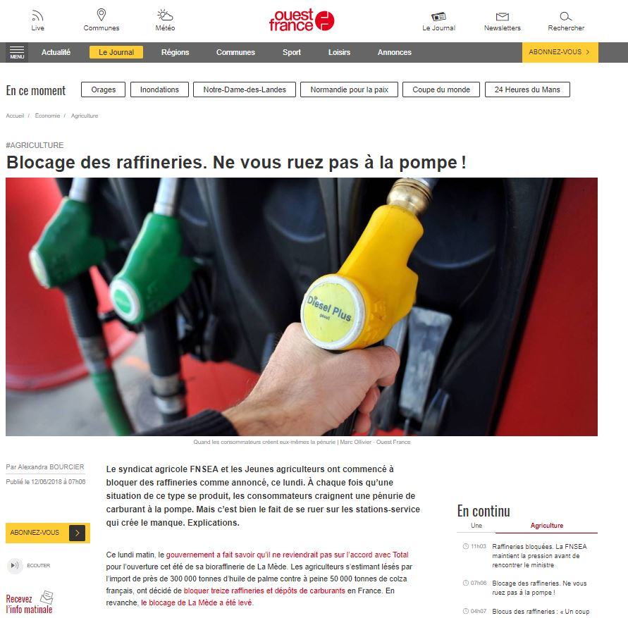 En attendant, donc comme prévu, voici la copie d’écran de cet article de Ouest France qui nous dit dès le début : « À chaque fois qu’une situation de ce type se produit, les consommateurs craignent une pénurie de carburant à la pompe. Mais c’est bien le fait de se ruer sur les stations-service qui crée le manque. Explications »…