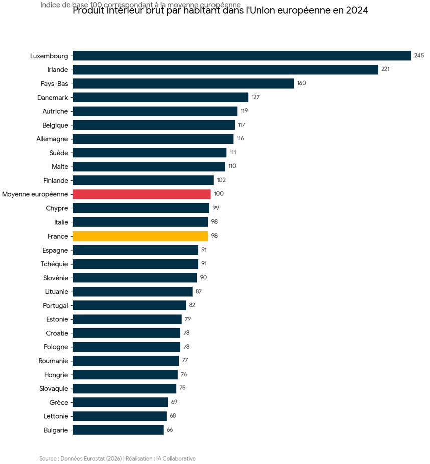 DÉCRYPTAGE – Longtemps parmi les pays les plus prospères du continent, la France est désormais passée sous la moyenne européenne en termes de PIB par habitant. →https://t.co/yDWE7yWTLa pic.twitter.com/m8brCGVJQf