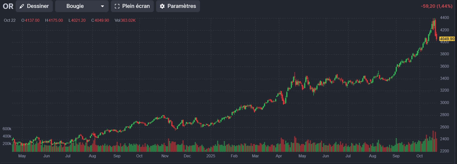 Pourquoi est-ce donc une bonne nouvelle ? Parce que l’or est pour simplifier le marqueur de la fin du monde. Quand l’or baisse, c’est que la fin du monde est reportée, et de vous à moi, c’est toujours une bonne nouvelle de pouvoir se dire que demain le soleil se lèvera comme la vieille et que l’or continuera aussi de briller.