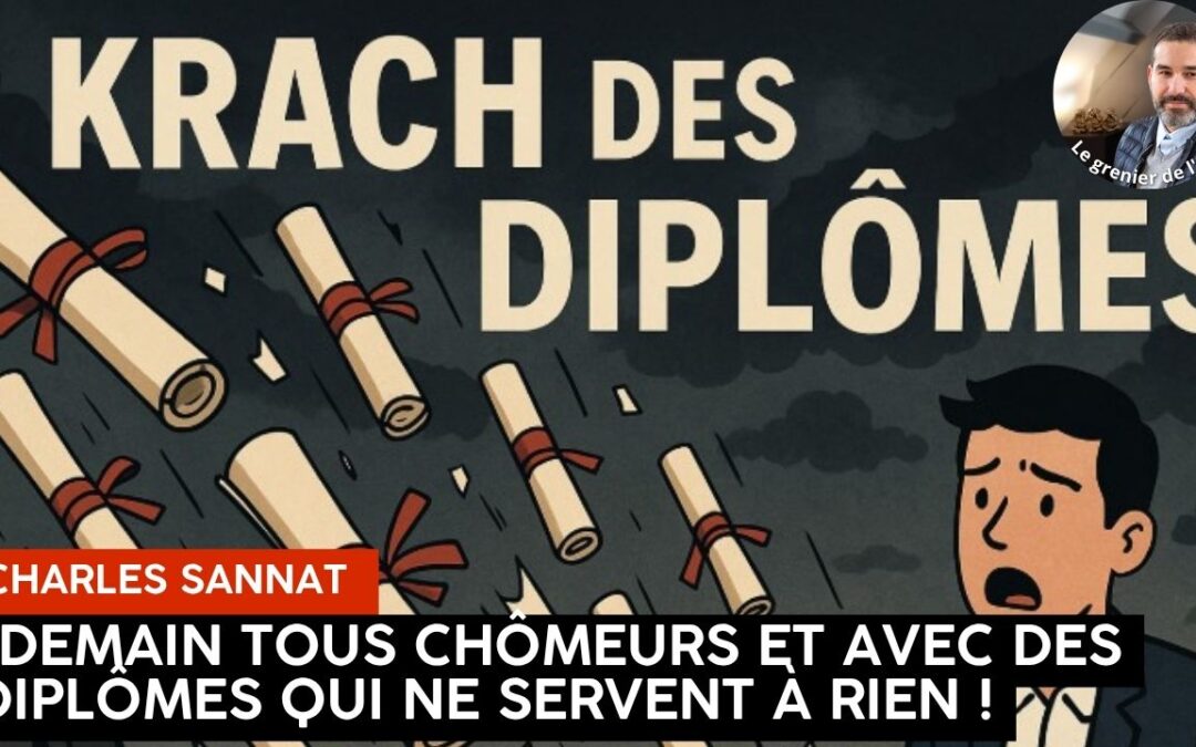 Le krach des diplômes a déjà commencé et nous savons tous que le BAC est pour l’essentiel totalement démonétisé, démonétisées également toutes ces formations en Bac+5 qui n’apprennent pas grand-chose ou si peu alors qu’il faut 5 ans ce qui est très long et beaucoup d’argent pour en sortir sans rien savoir faire vraiment.