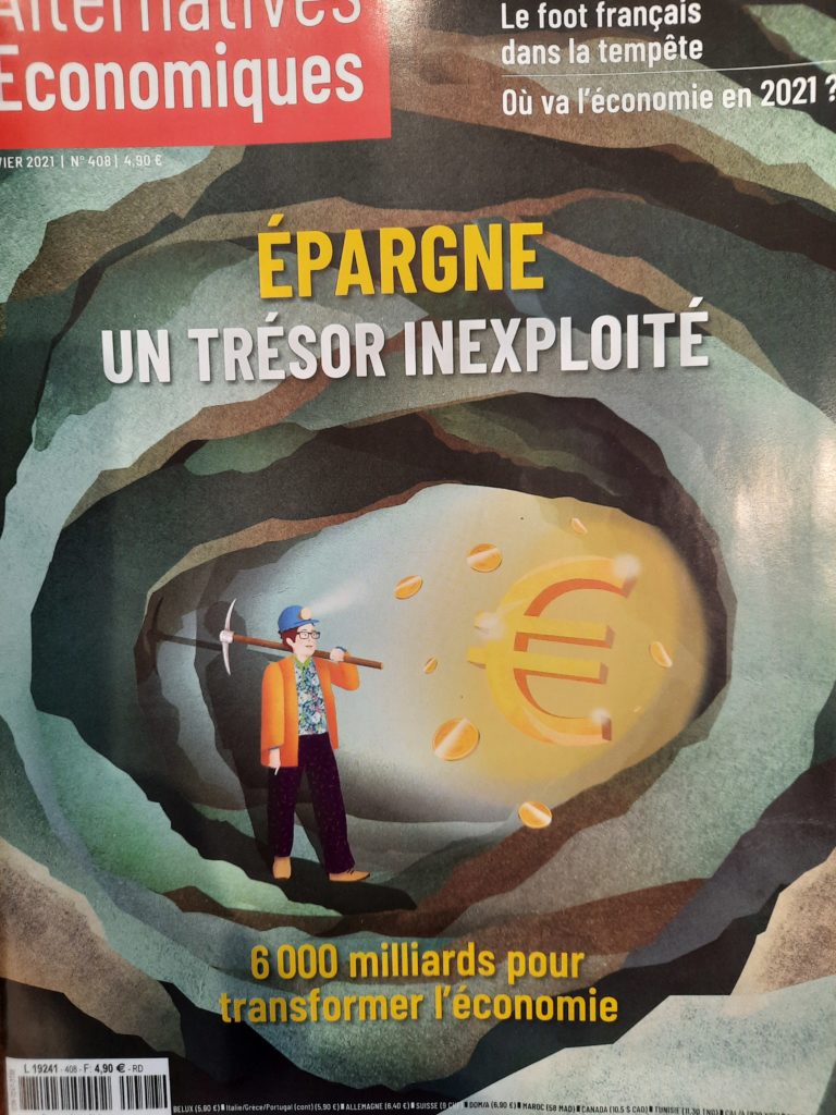 C'est la dernière couverture du magazine Alternative Economique, le magazine qui pense bien. C'est facile de bien penser. Il suffit de dire qu'il n'y a qu'à mieux utiliser l'épargne des Français, un trésor de plus de 6 000 milliards d'euros ! Pour mieux l'utiliser c'est simple. Il suffit de prendre votre argent, car au bout...